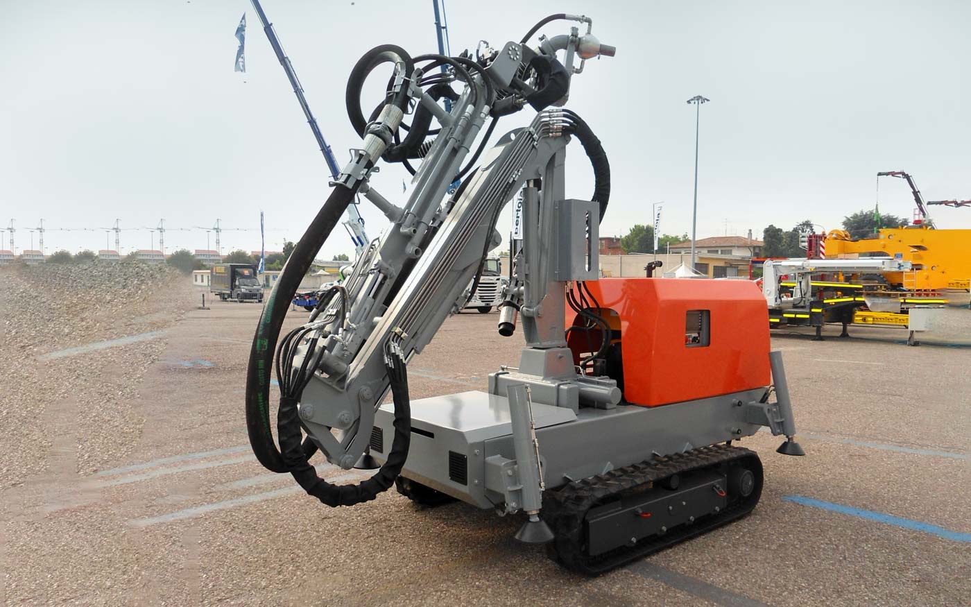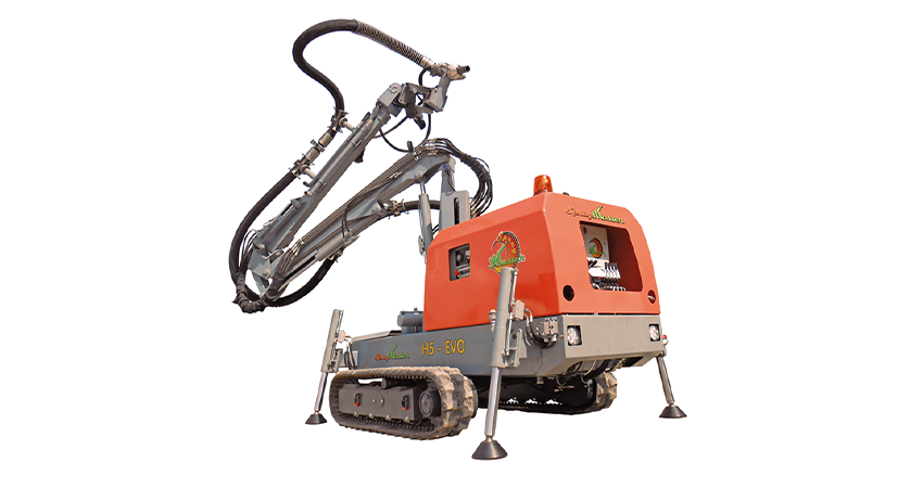Le système d’application mécanisé de béton projeté est conçu pour pulvériser du béton dans de courtes sections de tunnel difficiles d’accès. Monté sur un châssis compact à chenilles avec un moteur Diesel, l’engin est équipé de stabilisateurs à commande hydraulique. La lance est montée sur un bras articulé et télescopique.